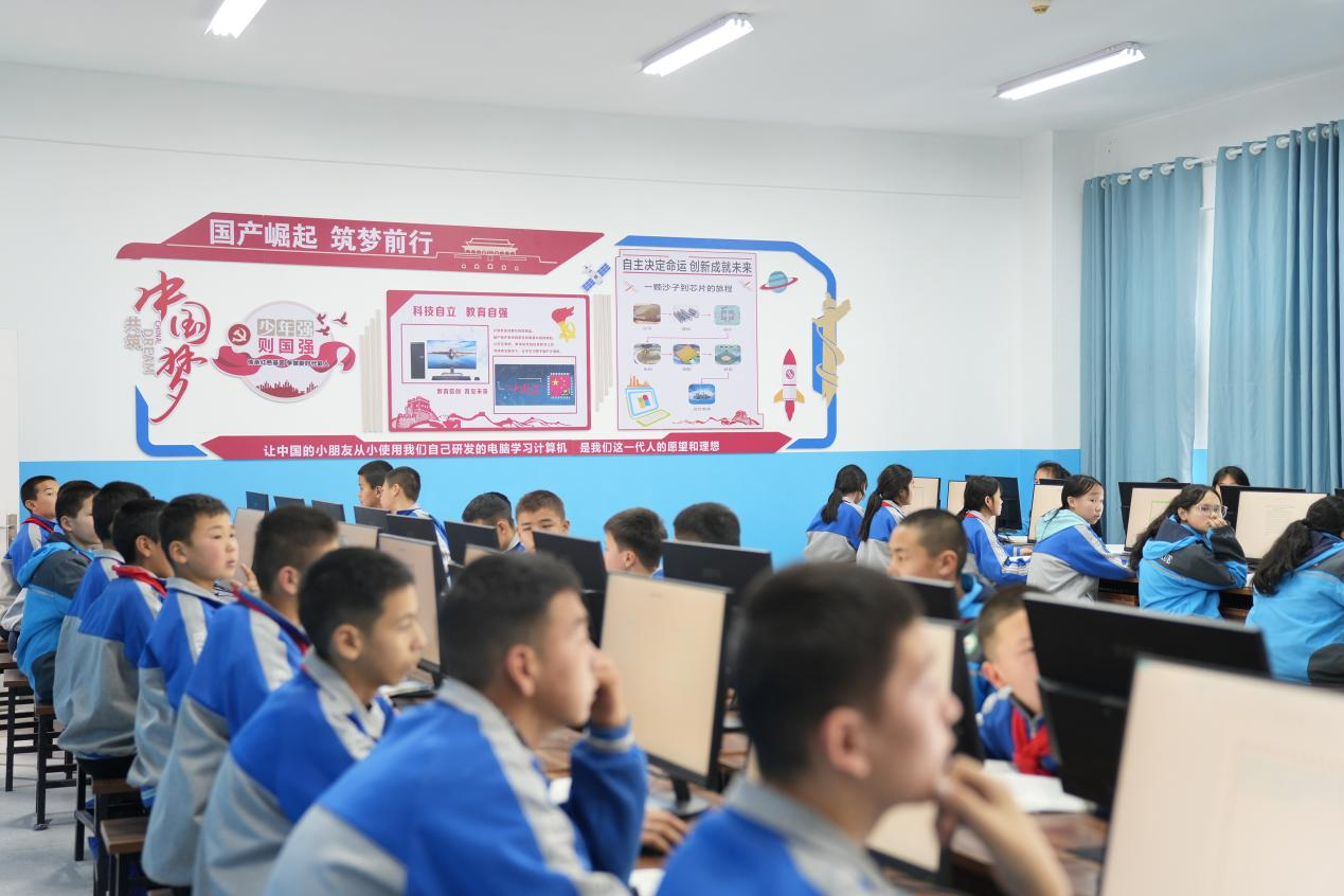 在新疆尼勒克县多所小学,龙芯信创教育项目为5000余名少数民族学生打开探索信息科技的大门,让他们借助国产计算机构建对科技世界的初步认知。